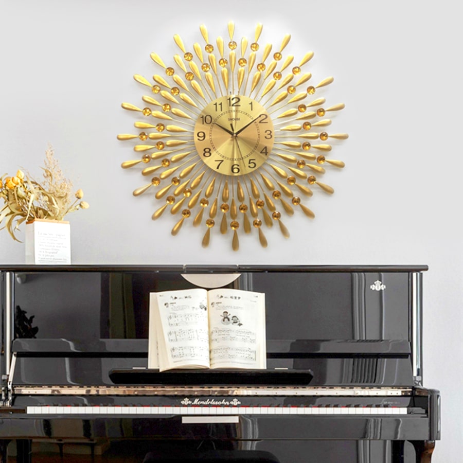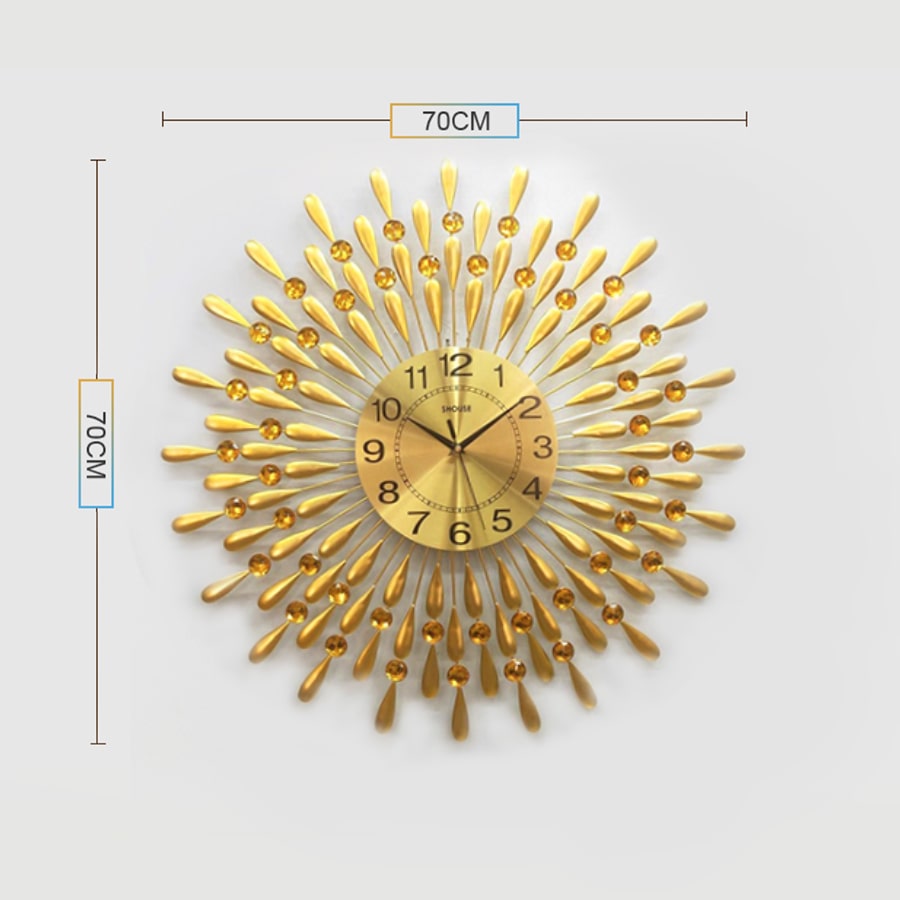 Đồng Hồ Treo Tường Trang Trí Đẹp S-A30 độc lạ 3d cỡ lớn nghệ thuật phù hợp cho phòng khách, phòng ngủ Hình ảnh thực tế của đồng hồ nước mắt mặt trời A30 Kích thước thực tế của đồng hồ nước mắt mặt trời A30 Dễ dàng bài trí với nhều không gian phòng khách khác nhau   Đồng hồ nước mắt mặt trời A30 trang trí tại phòng bếp Đồng hồ nước mắt mặt trời trang trí tại phòng khách Tạo điểm nhấn cho không gian nhà của bạn Kiểu dáng sang trọng, tinh tế và hiện đại Đồng hồ nước mắt mặt trời trang trí trong phòng làm việc Đồng hồ treo tường SHOUSE - Sự lựa chọn số một cho không gian nhà của bạn! Các mẫu đồng treo tường được thiết kế sáng tạo đang là xu hướng nội thất tạo điểm nhấn cho phòng khách, được nhiều gia đình yêu thích. Mỗi gia chủ đều mong muốn kiến thiết không gian sống, nhất là phòng khách, trở nên mới lạ và thu hút hơn, nhằm thể hiện dấu ấn cá nhân và nâng cao hiệu quả thẩm mỹ cho mái ấm. Nếu bạn đang có ý định trang hoàng phòng khách trong dịp năm mới, đồng hồ trang trí là lựa chọn tốt để tạo điểm nhấn sang trọng. Xu hướng trang trí sang trọng Xu hướng trang trí đồng hồ nghệ thuật là một trong những lựa chọn được không ít gia chủ yêu thích. Một chiếc đồng hồ treo tường đẹp không chỉ giúp theo dõi thời gian, mà còn trở thành đồ trang trí nội thất nổi bật. Với kiểu dáng thiết kế độc đáo và mới lạ, mỗi sản phẩm đều mang tới điểm nhấn khác lạ trong trang trí kiến trúc nội thất. Gợi ý một số mẫu đồng hồ trang trí nội thất đẹp Nếu yêu thích phong cách trẻ trung và cá tính, bạn không nên bỏ qua mẫu thiết kế đồng hồ trang trí hiện đại. Với thiết kế mới lạ và mạnh mẽ, mẫu thiết kế này mang tới cho căn hộ sự phóng khoáng và sang trọng. Sản phẩm được thiết kế tinh xảo. Với tone màu vàng và bạc lấp lánh, chất liệu thép chống gỉ, đây sẽ là món đồ mang lại nét sang trọng cho không gian sống.