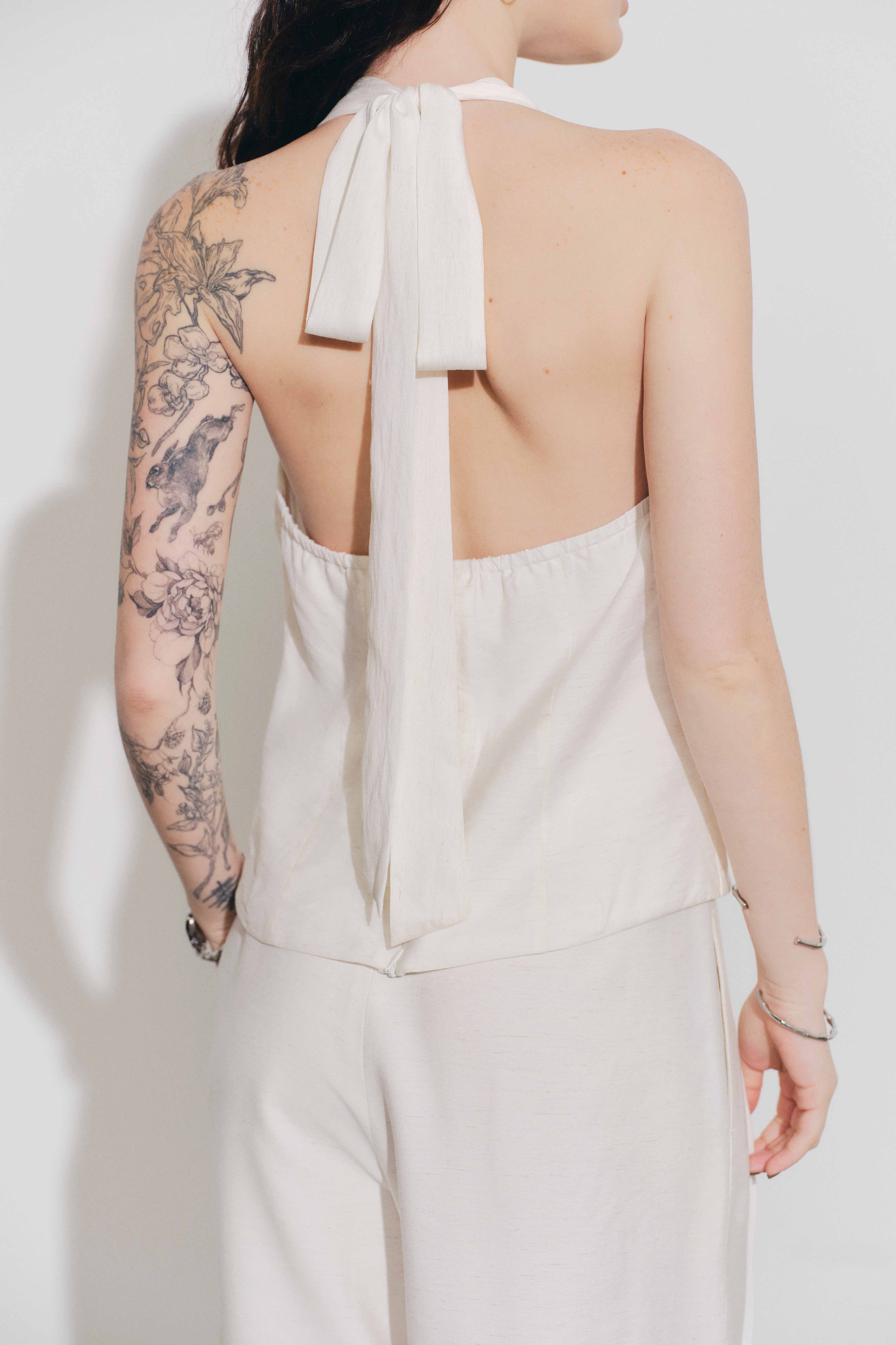 --------------- CHI TIẾT SẢN PHẨM ✿ Sản phẩm : Áo yếm cổ xếp ly kem cổ sâu quyến rũ nữ tính Rami Miều Est.2013 ✿ Chất liệu : Kate Hoa ✿ Màu sắc : KEM