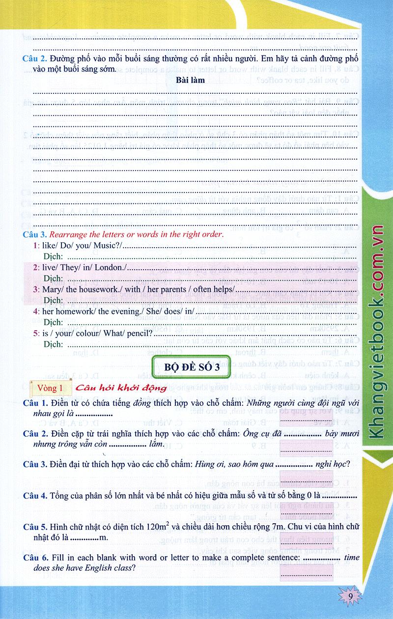 EM MUỐN THÀNH TRẠNG NGUYÊN NHỎ TUỔI - LỚP 5 giúp các em học sinh lớp 5 có thêm tài liệu ôn tập trước khi đến với mỗi cuộc thi, đồng thời đây cũng là một tài liệu tham khảo hữu ích với các thầy cô giáo, các bậc phụ huynh trong việc hướng dẫn con em ở nhà. Đây là một cuốn sách thông minh cho bé với các kiến thức đầy đủ từ các môn học khoa học xã hội và tự nhiên giúp các em khám phá năng lực bản thân.Các câu hỏi trong mỗi vòng thi đều được chúng tôi lựa chọn trong chương trình học lớp 5 với các môn học: Toán, Tiếng Việt, Tiếng Anh, Âm nhạc, Tự nhiên & Xã hội. Phần cuối là đáp án và hướng dẫn cách làm bài cũng như một số bài văn tham khảo.