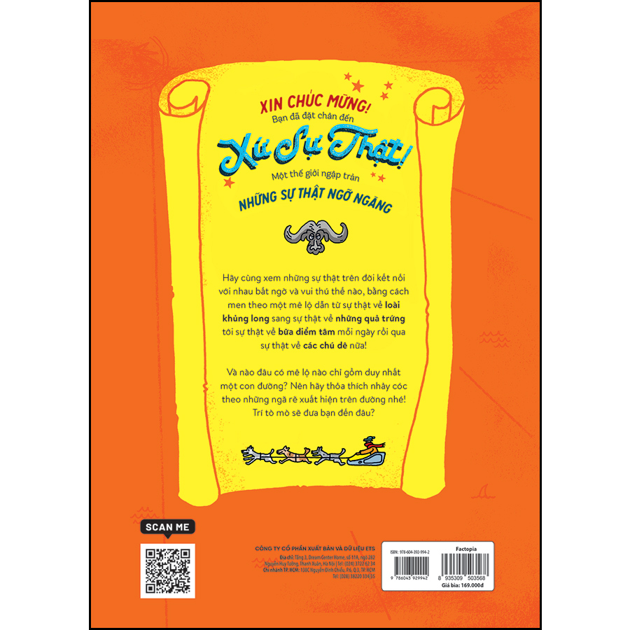 Factopia là cuốn sách hoàn hảo cho bất kỳ người yêu thích sự thật nào, chứa 400 sự thật khác nhau để khám phá và kinh ngạc, bao gồm đủ mọi chủ đề tự nhiên đến rô-bốt, cơ thể con người cho đến không gian. Bạn có biết rằng khoảng 12% số người trong chúng ta có giấc mơ chỉ gồm hai màu đen trắng? Rằng Trái Đất phát ra tiếng vo ve? Rằng ở Mỹ có một khách sạn hình củ khoai tây? Mỗi sự thật được trình bày dưới dạng một đoạn trích trên trang, có hình minh họa hoặc ảnh đi kèm – nhưng một trong những điều khiến cuốn sách này nổi bật là hệ thống “lần theo dấu vết”. Thay vì được nhóm lại với nhau theo chủ đề, các sự kiện được kết nối theo những cách khác thường hơn: độc giả được khuyến khích lần theo dấu vết giữa các sự kiện theo đúng nghĩa đen, điều này có thể dẫn từ sự thật về một ngọn núi ở Peru có tên là Núi Cầu vồng đến sự thật về cầu vồng thực tế; sau đó từ cầu vồng là hình tròn như thế nào đến sự thật về những thứ khác là hình tròn. Vì vậy, độc giả có thể thỏa sức nhảy vào và nhảy ra, hoặc đi theo đường mòn từ đầu đến cuối, hoặc thậm chí chọn một trong các nhánh phụ để bỏ qua hay quay lại một sự thật được kết nối khác. Không chỉ có vô số nội dung thú vị để khám phá, cuốn sách còn mang đến một loại trải nghiệm đọc khác và khuyến khích một chút suy nghĩ “bên ngoài khuôn khổ”. Điểm ấn tượng/nổi bật: