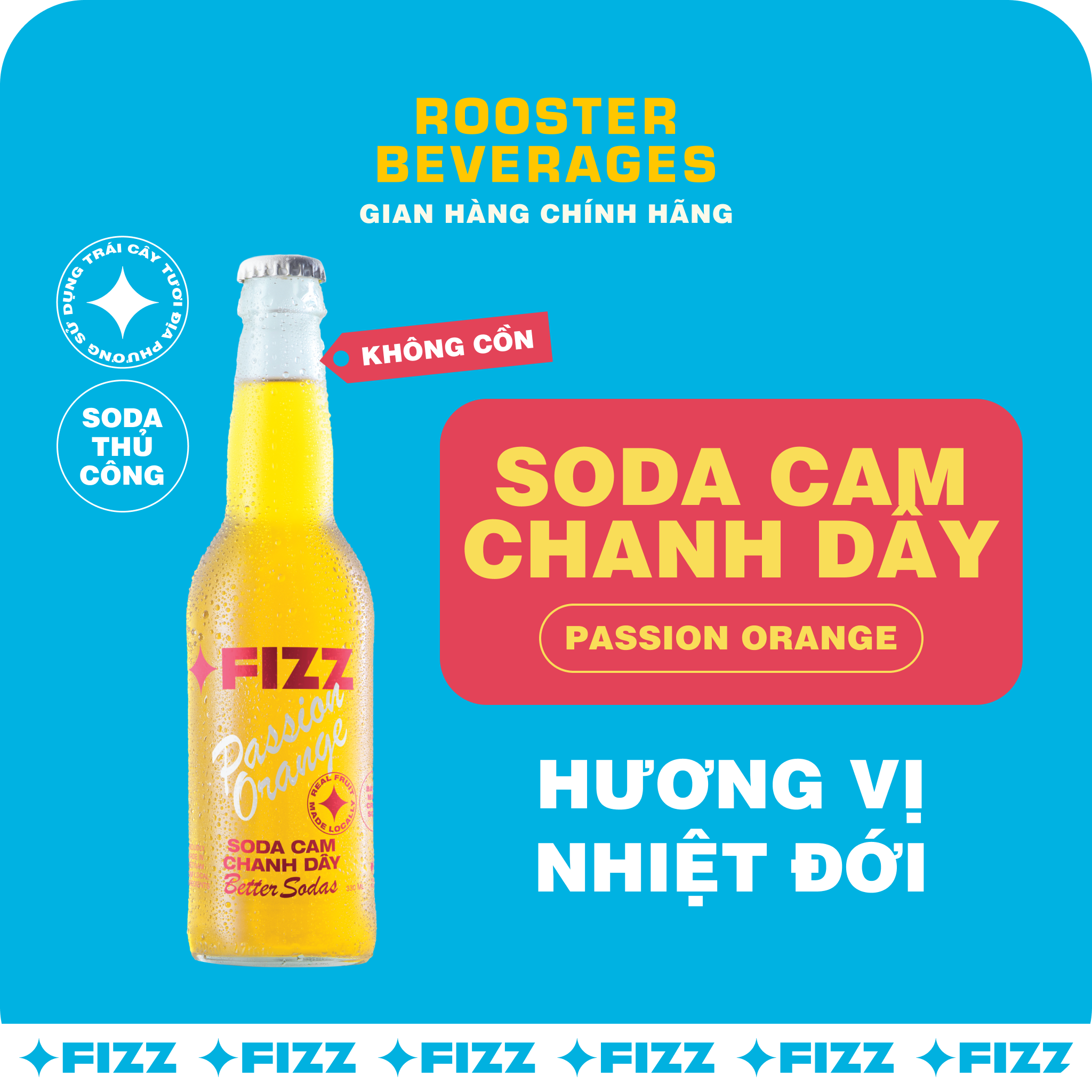 Fizz Soda Cam Chanh Dây - Passion Orange Hương Vị Nhiệt Đới Soda Passion Orange sảng khoái của chúng tôi được làm từ cam và chanh dây được thu hoạch tại Đồng bằng sông Cửu