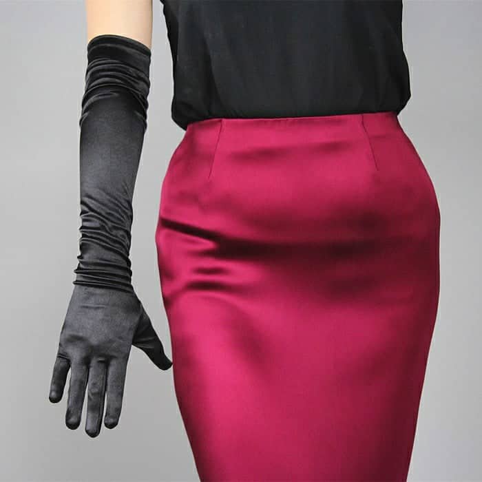 Găng tay Cô dâu và Dạ hội, đi tiệc, sự kiện, đạo cụ chụp ảnh, studio MS: 39909 Chất liệu: phi lụa co dãn Màu sắc: đen Chiều dài: 45 - 52cm