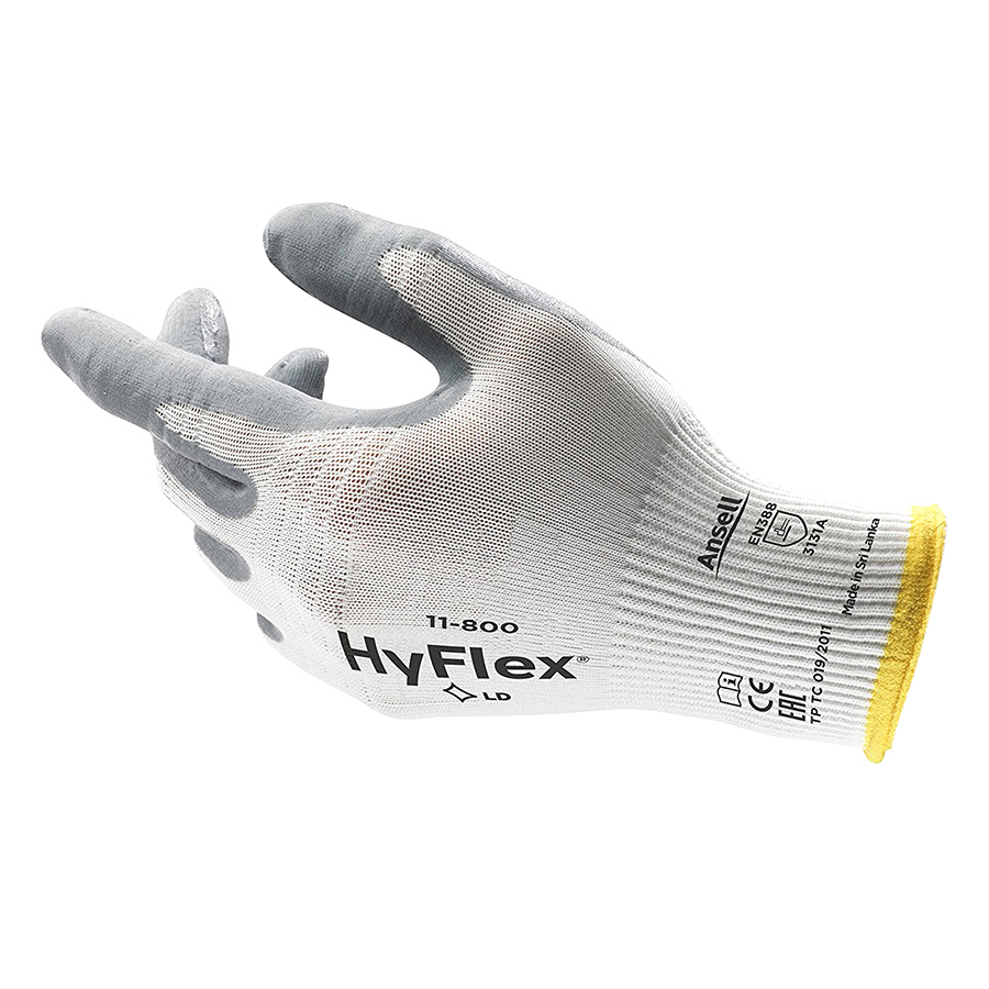 Găng tay đa dụng Hyflex 11-800 phủ Nitrile, khít tay, chống dầu mỡ, thao tác cơ khí dụng cụ đa năng.