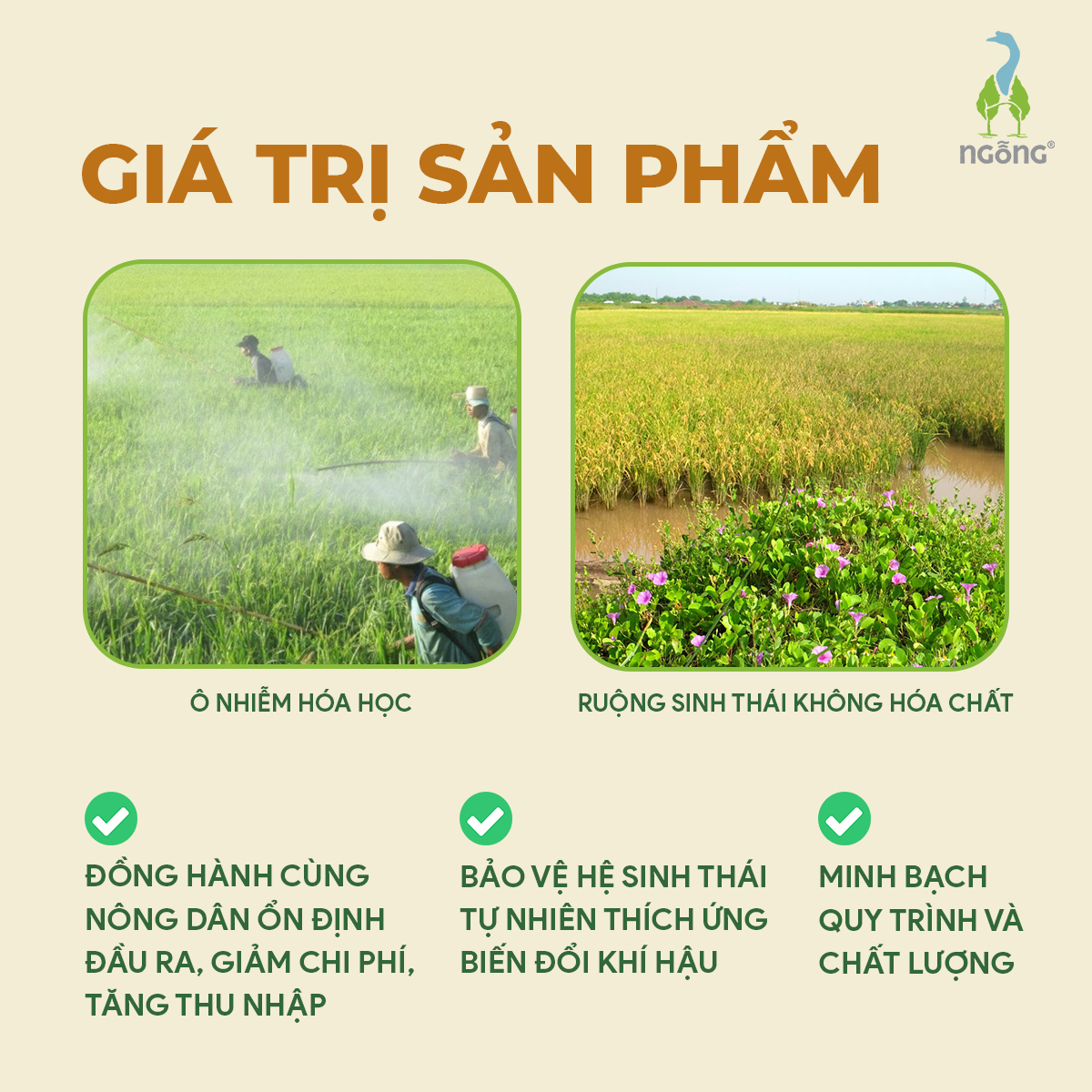 Nhằm tạo ra chất lượng tốt nhất, gạo Ngỗng không chỉ khác biệt trong quy trình canh tác, trồng trọt mà quy trình sản xuất gạo sinh thái Ngỗng cũng rất khác so với gạo thông thường để tạo ra chất lượng tốt nhất.
