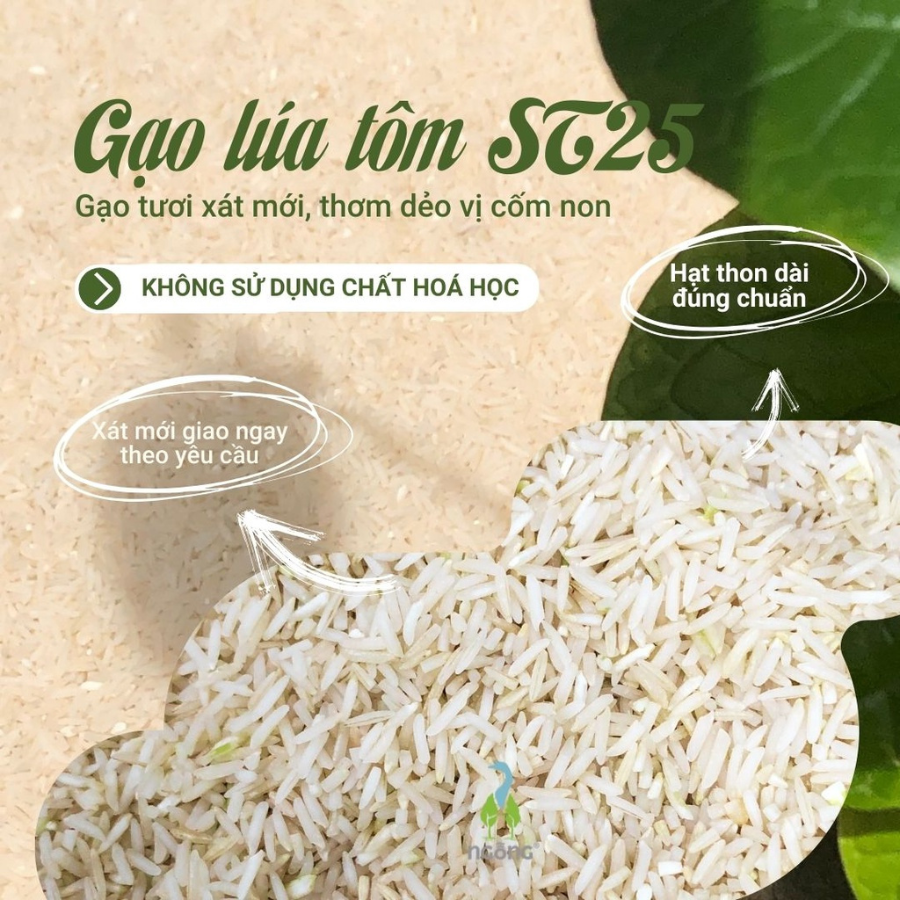 • Gạo sinh thái ST25 lúa tôm gặt non cho hương sữa cốm quyện trong chất cơm mềm dẻo, đậm vị.