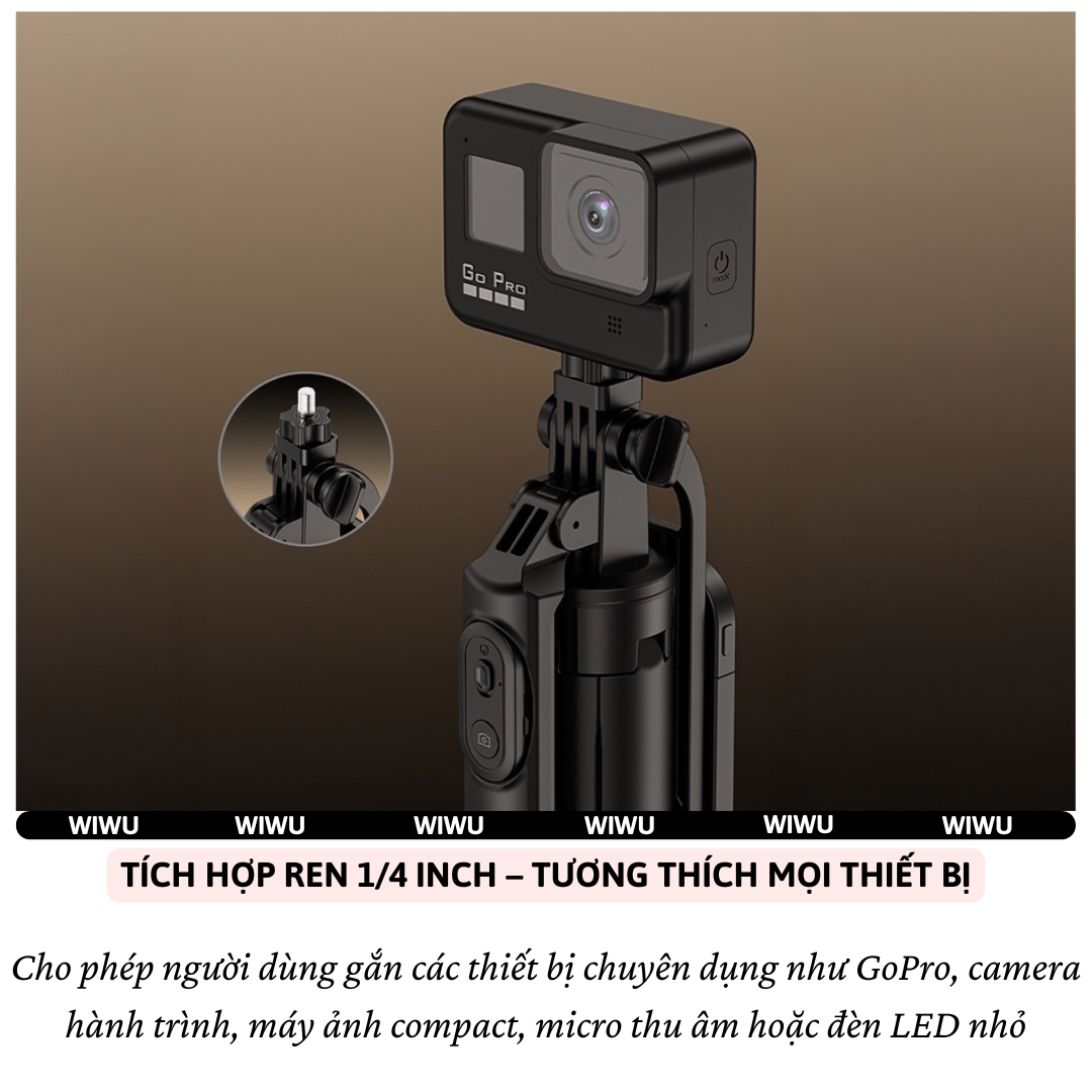 GẬY TỰ SƯỚNG BLUETOOTH WIWU Wi-SEO12 – CHỤP ẢNH ĐẸP, LIVESTREAM ĐỈNH Gậy Selfie 3 trong 1 – Tích hợp chân tripod, đèn trợ sáng, remote bluetooth cùng thiết kế chống rung chuyên nghiệp. Lý tưởng cho chụp ảnh nhóm, quay vlog, livestream hoặc phỏng vấn di động. TÍNH NĂNG NỔI BẬT Trang bị 2 đèn Flash trợ sáng – Tăng cường ánh sáng cho khuôn mặt, selfie rõ nét kể cả trong môi trường thiếu sáng. – Phù hợp khi livestream, quay ban đêm hoặc trong phòng tối. Remote Bluetooth tháo rời – Kết nối ổn định, không độ trễ. – Phạm vi điều khiển từ xa lên đến 10m. – Thiết kế rời, dễ tháo lắp và sạc lại pin tiện lợi. Xoay 360° – Quay dọc, quay ngang linh hoạt – Đáp ứng mọi góc quay sáng tạo. – Chuyển từ chế độ quay dọc sang quay ngang chỉ trong 1 thao tác. Chống rung vật lý – Thiết kế cân bằng trọng lực – Gậy giữ máy luôn ổn định khi quay phim di chuyển. – Cho video mượt mà, không rung lắc dù đi bộ, chạy xe, trượt ván... Hệ thống cân bằng 3 trục – Giữ điện thoại luôn ở trạng thái cân bằng. – Hạn chế tối đa rung, nghiêng – tạo khung hình chuyên nghiệp mà không cần gimbal. Chân tripod 4 cạnh siêu vững chắc – Thiết kế kiểu gập hình thoi, chắc chắn, không rung lắc. – Giữ vững thiết bị khi đặt trên bàn, sàn nhà, hoặc ngoài trời. Cổng ren 1/4 inch tiêu chuẩn – Kết nối đa dạng: GoPro, máy ảnh mini, micro thu âm, đèn LED... Kẹp điện thoại đa năng – Tương thích mọi dòng máy – Kẹp co giãn chắc chắn, phù hợp cho iPhone Mini đến cho iPhone Pro Max, Galaxy, cho Xiaomi… Chiều dài kéo dài đến 1.8m – Dễ dàng selfie góc rộng, chụp toàn thân, quay nhóm đông người. CHẤT LIỆU CAO CẤP – ĐỘ BỀN VƯỢT TRỘI Hợp kim nhôm nguyên khối – siêu nhẹ, chống rỉ, chống mài mòn Chống trượt – bám tay tốt, không mỏi khi cầm lâu Thiết kế tinh xảo – sang trọng, hiện đại PHÙ HỢP CHO: ️ Người làm vlog, Clip ️ Livestream bán hàng online ️ Du lịch, dã ngoại, chụp ảnh nhóm ️ Học online, họp trực tuyến Đặt mua ngay Gậy Tự Sướng WiWU Wi-SEO12 – Trợ thủ đắc lực giúp bạn nâng tầm nội dung, lưu giữ mọi khoảnh khắc ấn tượng!