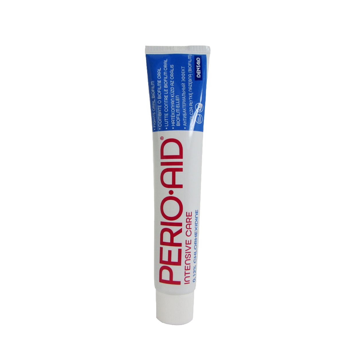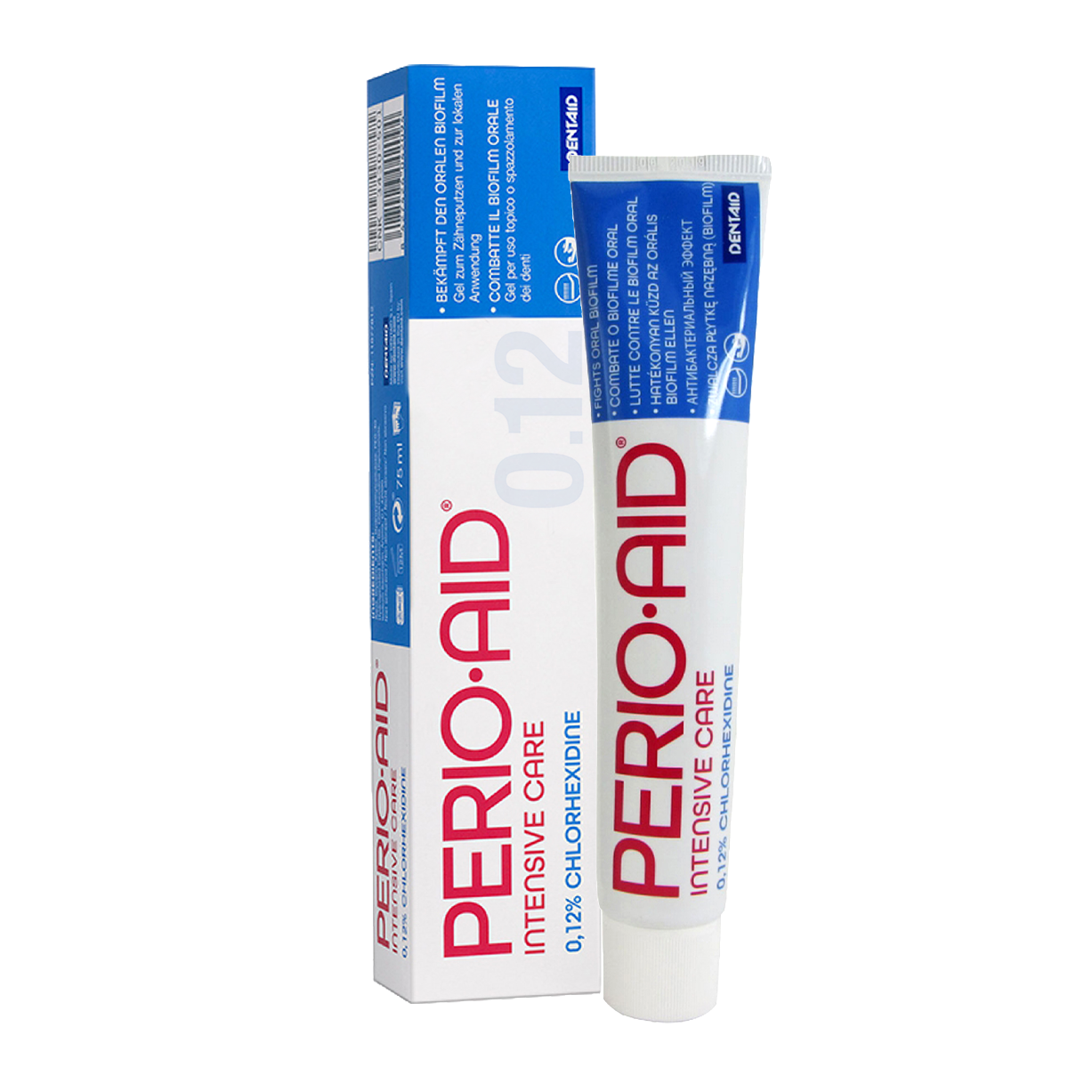 KEM ĐÁNH RĂNG KHÁNG KHUẨN PERIO - AID ĐÁNH BẬT MẢNG BÁM RĂNG Chỉ sử dụng 5 ngày - 3 tuần Gel đánh răng PERIO•AID Intensive Care là kem đánh răng kháng khuẩn, ngăn cản quá trình hình thành mảng bám răng. Khi sức khỏe răng miệng không được duy trì tốt sẽ hình thành mảng bám trên bề mặt răng, và tại các đường viền nướu, là nguyên nhân dẫn đến hai bệnh lý răng miệng chính: