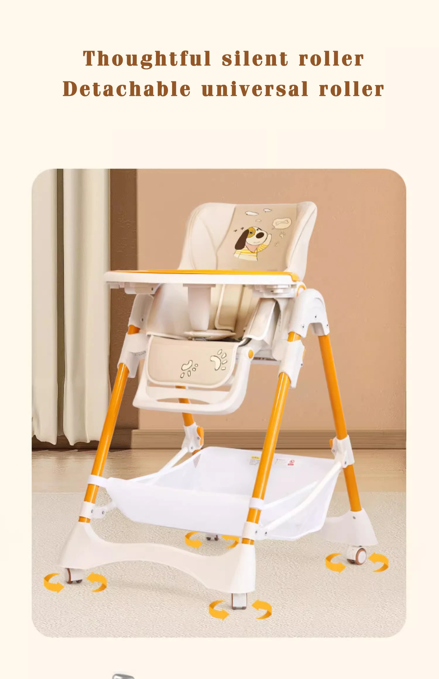 Ghế ăn dặm đa năng Umoo với bàn ăn rộng hơn, có gi( để đồ, chân để vững chắc hơn, chân đế chống trượt to bản giúp bám xuống mặt sàn tốt MỘT SỐ TÍNH