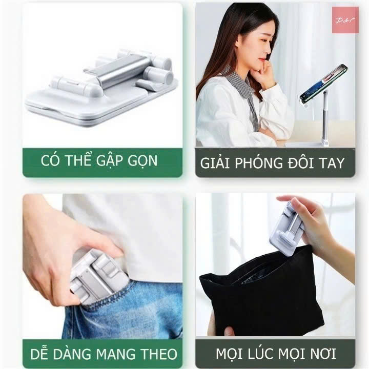 Giá Đỡ Điện Thoại, iPadD Để Bàn Có Thể Gập Lại Và Điều Chỉnh Đa Năng Sản phẩm này mang đến sự tiện ích tuyệt vời, giúp bạn dễ dàng học tập và làm việc mà không cảm thấy mệt mỏi khi cầm trên tay điện thoại hoặc iPadD. Các buổi học trực tuyến cho trẻ nhỏ hay các cuộc họp online của nhân viên văn phòng sẽ trở nên thuận tiện hơn bao giờ hết. Chỉ cần đặt thiết bị lên bàn làm việc hoặc vị trí phù hợp.   Các đặc điểm nổi bật: ☛ Đa năng sử dụng cho smartphone, iPadD mini, các thiết bị nhỏ, gương chiếu ☛ Dễ dàng quan sát từ mọi góc độ, chân đế ổn định, không bị rung lắc, bề mặt tiếp xúc chống trượt ☛ Có thể điều chỉnh chiều cao, gấp gọn 90 độ, điều chỉnh đa góc 75 độ, nhỏ gọn và dễ mang theo ☛ Có thể NHẬN và NGHE CUỘC gọi dễ dàng chỉ với 1 lần bấm khi để điện thoại trên kệ ☛ Giúp không gian của bạn trở nên gọn gàng và ngăn nắp ☛ Gấp gọn và tiện lợi cho việc du lịch   ❈ Giá đỡ điện thoại nâng cao
