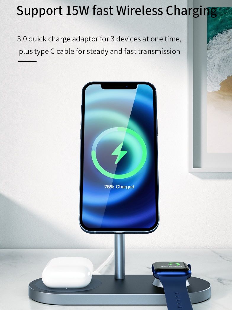 Bạn đang sở hữu nhiều sản phẩm của Apple. Bạn có quá nhiều dây sạc dành cho từng loại sản phẩm khác nhau như iPhone, Apple Watch, Airpod và bạn luôn gặp phiền phức với chỗ dây sạc rối rắm trên bàn. Đừng lo, hãy để chúng tôi giới thiệu đến bạn sản phẩm đến từ nhà WIWU đó là Đế sạc nhanh không dây 15W 3 in 1 hiệu WIWU Power Air Wireless Charger X23,