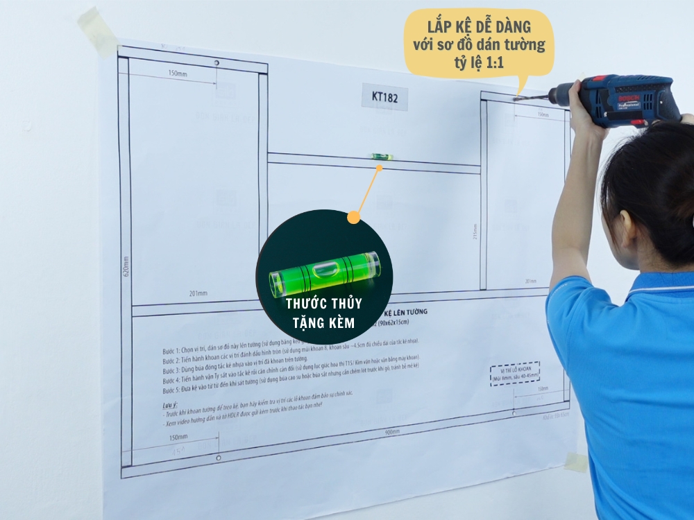 *Lắp ráp* - Bộ sản phẩm được đóng gói dạng rời gồm các tấm gỗ được dán nhãn và đánh số kèm theo sơ đồ lắp ráp, đầy đủ phụ kiện, video. Việc treo kệ