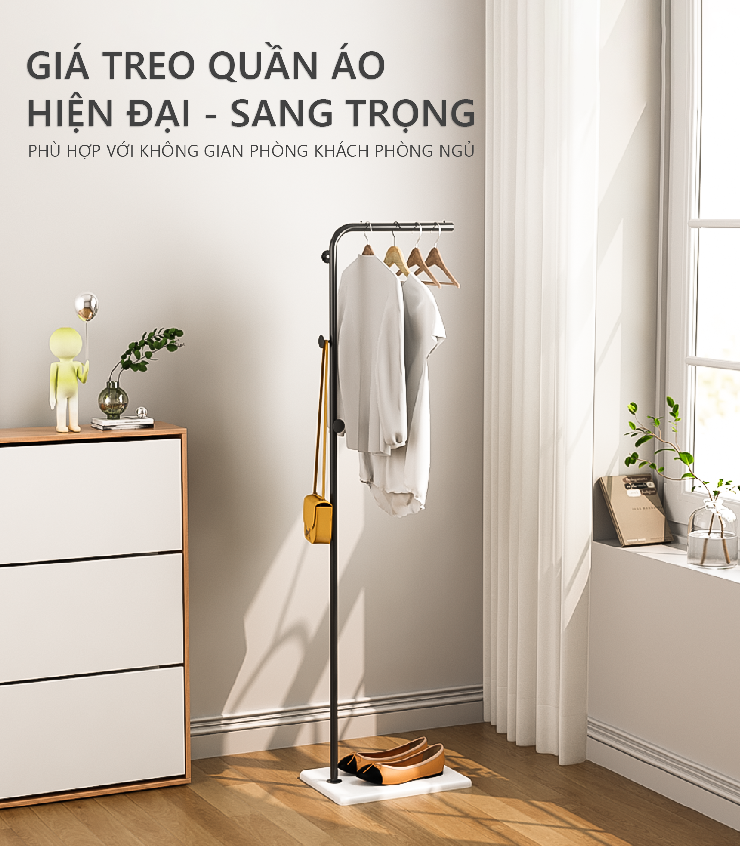 Công năng: Là mẫu giá treo quần áo có thiết kế sang trọng và đẹp mắt.