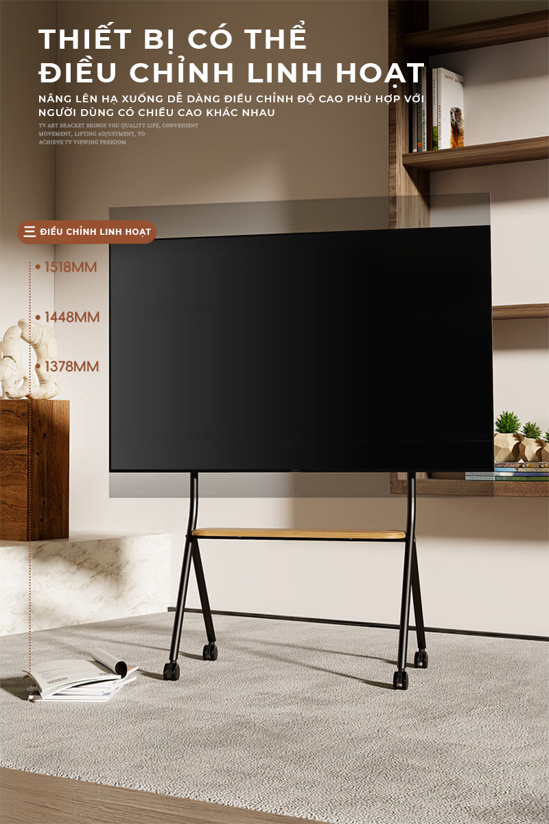 Công năng: Là mẫu giá treo tivi di động kèm kệ để đồ tiện lợi phù hợp nhiều không gian như phòng khách, phòng ngủ, phòng họp, phòng cộng đồng, ..