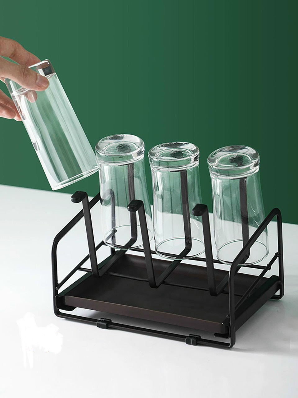 ✨Giá úp cốc hình chữ nhật kèm khay hứng nước sơn tĩnh điện đen chống rỉ - VD94