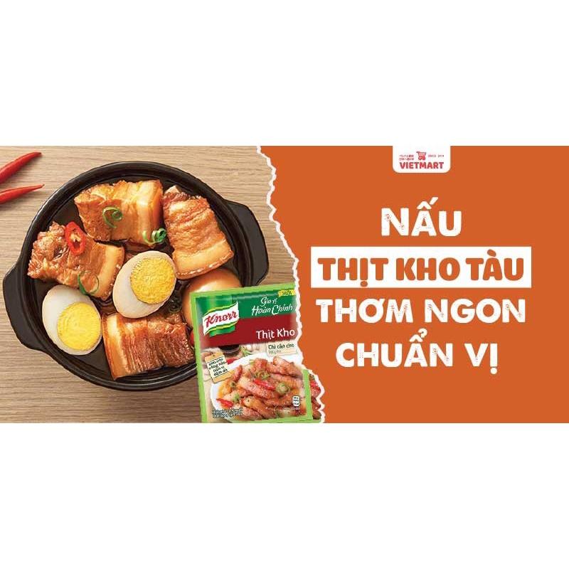 Gia vị nêm sẵn thịt kho Aji-Quick có hương vị đậm đà, thơm ngon từ các gia vị như đường, mắm, tỏi, hành, gia vị 5 gia vị và nhiều loại gia vị khác. Sản phẩm có thể được sử dụng để nêm nếm các loại thịt, tạo ra hương vị đặc trưng của món thịt kho truyền thống.