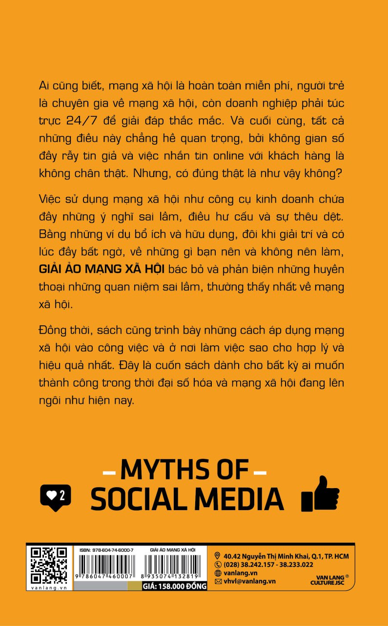 Việc sử dụng mạng xã hội như công cụ kinh doanh chứa đầy những ý nghĩ sai lầm, điều hư cấu và sự thêu dệt. Bằng những ví dụ bổ ích và hữu dụng, đôi khi giải trí và có lúc đầy bất ngờ, về những gì bạn nên và không nên làm, GIẢI ẢO MẠNG XÃ HỘI bác bỏ và phản biện những huyền thoại những quan niệm sai lầm, thường thấy nhất về mạng xã hội.