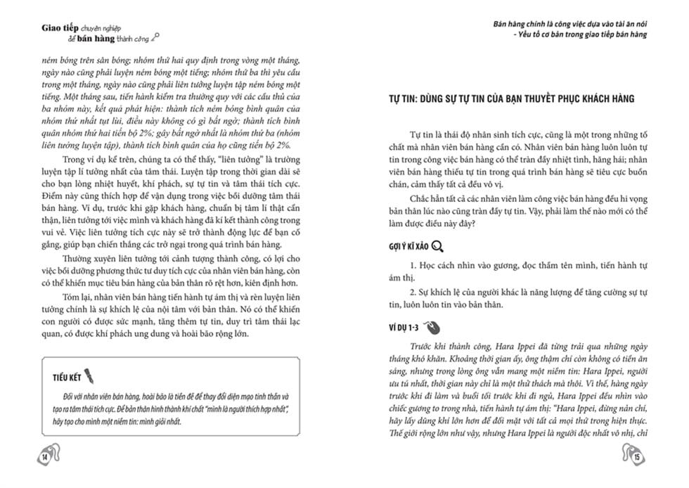 Từ chủ đề chung nhất về một giai đoạn cụ thể trong bán hàng, cuốn sách sẽ đưa ra các tình huống ví dụ rất thực tế trong việc trò chuyện với người mua hàng. Tiếp đó, nội dung đi sâu phân tích lý do khiến cho cách xử lý của người nhân viên thành công hoặc thất bại. Sau cùng là phần kết luận ngắn gọn, giúp bạn dễ dàng ghi nhớ các tip đã được đề cập và hướng dẫn cụ thể trong từng chương, từng phần.
