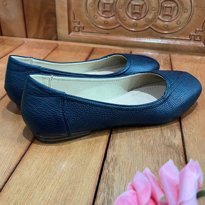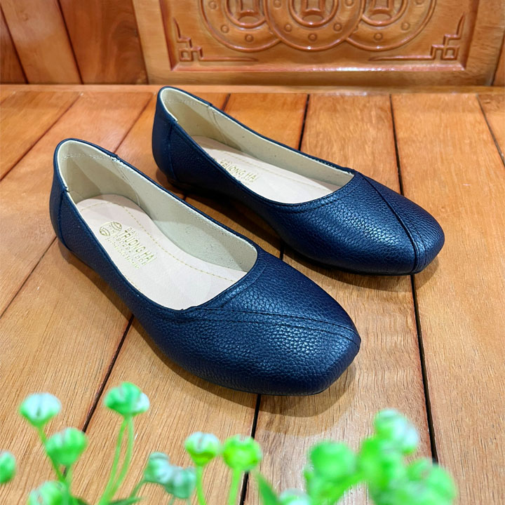 - Tên sản phẩm:Giày búp bê trơn da bò mũi vuông Trường Hải có 2 màu xanh ,đen GBB115