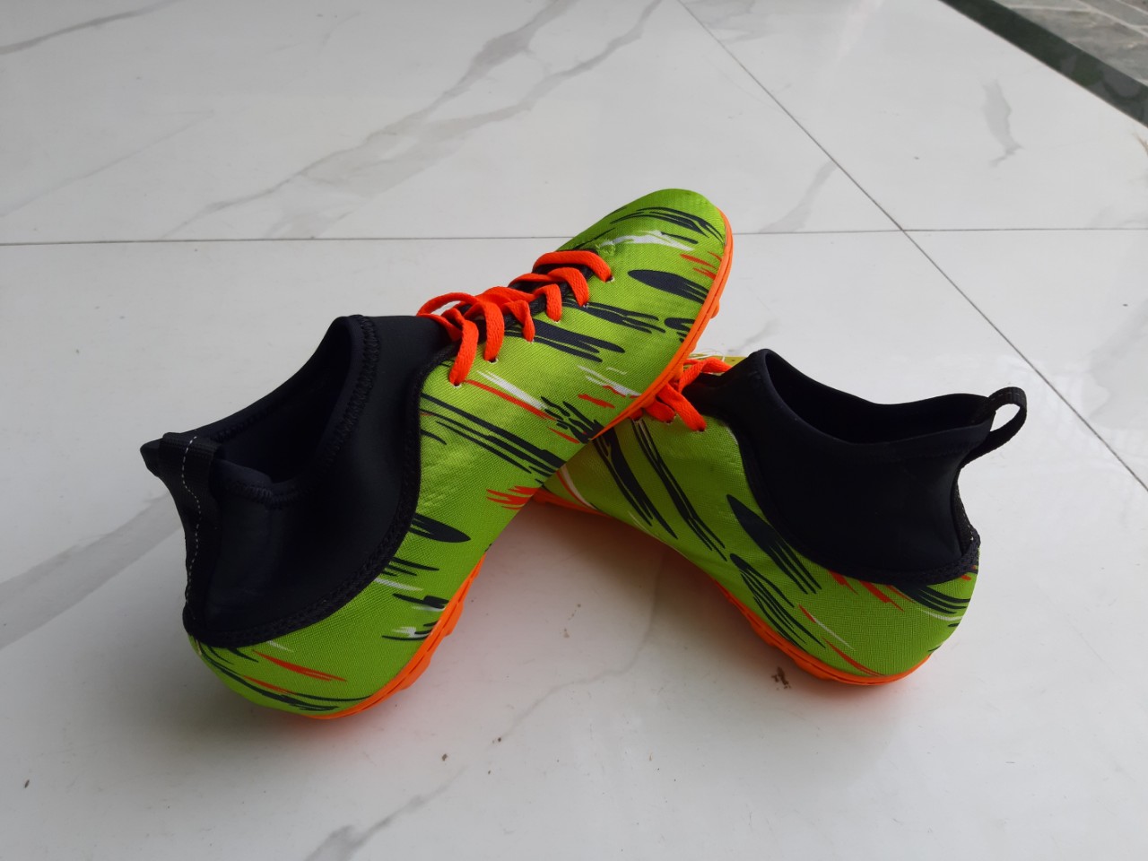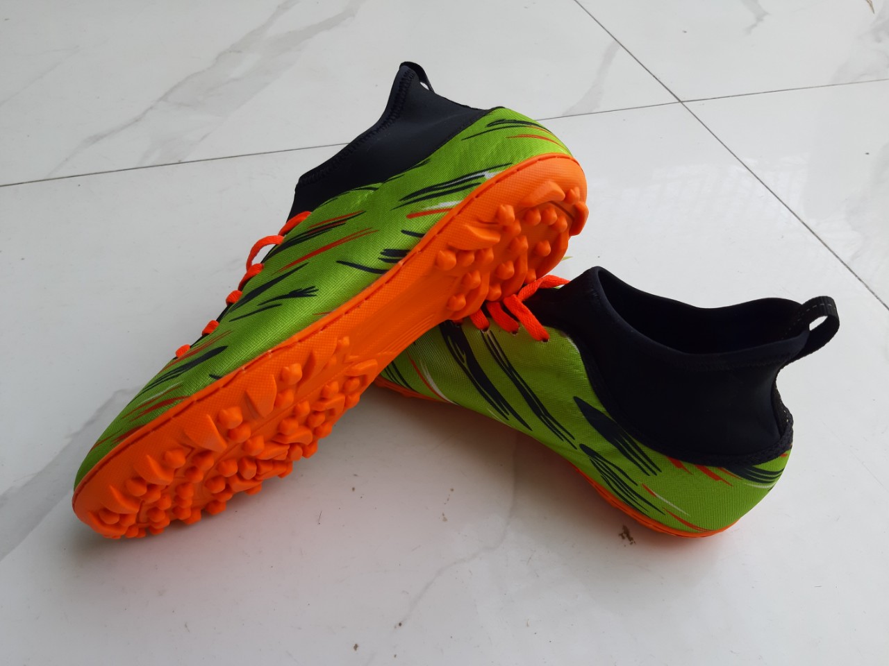 Đặc điểm sản phẩm: - Đế: Thiết kê đinh phù hợp sân cỏ nhựa, sân cỏ nhân tạo - Bên trong có lớp vải bảo vệ êm chân khi sút bóng - Thân giày đá