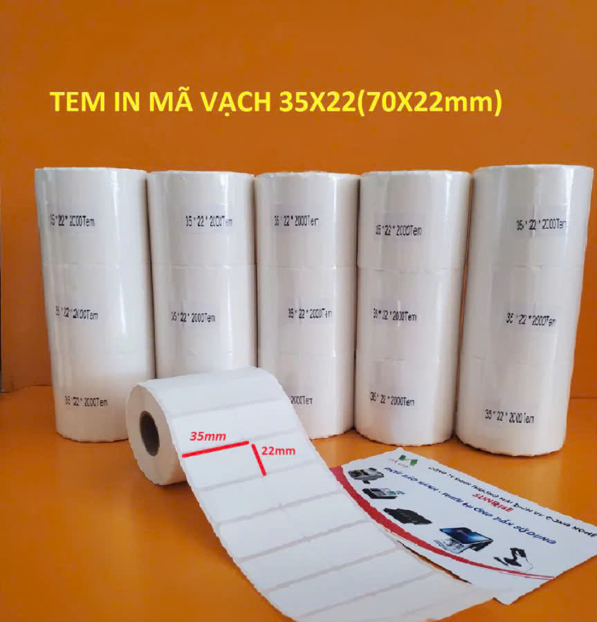 Giấy Decal Nhiệt In Mã Vạch 2 Tem Cỡ 35*22*25 Mm THÔNG TIN SẢN PHẨM Kích thước mỗi tem: 35x22 mm Số hàng tem: 2 hàng tem Chiều dài cuộn: 25 mét (tương đương gần