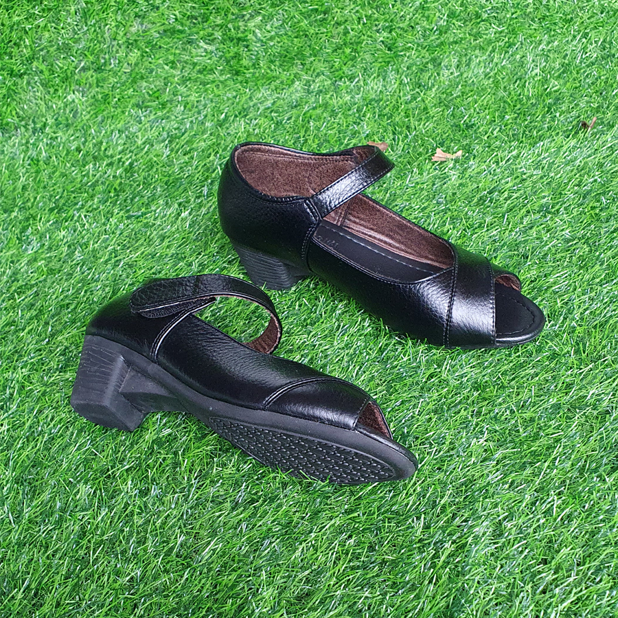 ✨Giày nữ gót vuông 5cm hở mũi Trường Hải da bò màu đen CG145