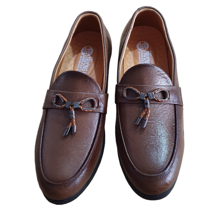 - Giày Tây Nam Da Bò Không Dây Trường Hải 2 Màu Nâu, Đen GT304 hai màu đen, nâu được sản xuất tại Việt Nam. - Thiết kế đơn giản trẻ trung phù hợp mọi