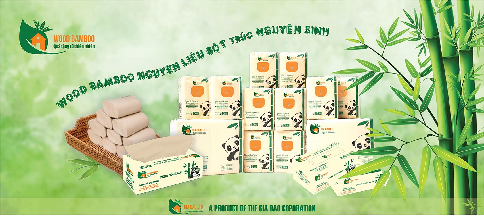 Giấy vệ sinh đa năng không lõi WOOD BAMBOO 3 lớp THÔNG TIN SẢN PHẨM: Chất liệu: Chiết xuất từ 100 % bột trúc nguyên sinh và bột giấy nguyên chất - Không hoá chất tẩy trắng. Được sản xuất tại Công ty TNHH Xuất Nhập Khẩu Thuận Phát - Khu công nghiệp Thuận Thành 3, Xã Thanh Khương, Huyện Thuận Thành, Tỉnh Bắc Ninh Quy cách đóng gói: (1 Lốc 10 cuộn), 10 lốc/thùng
