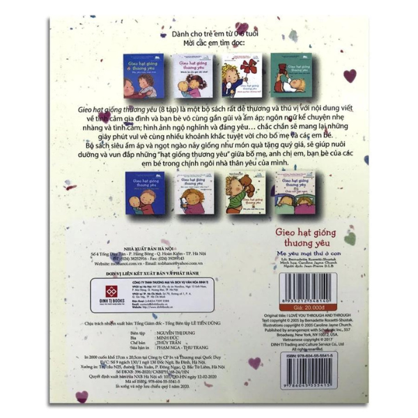 Gieo hạt giống thương yêu (8 tập) là một bộ sách rất dễ thương và thú vị với nội dung viết về tình cảm gia đình và bạn bè vô cùng gần gũi và ấm áp, ngôn ngữ kể chuyện nhẹ nhàng và tình cảm, hình ảnh ngộ nghĩnh và đáng yêu... chắc chắn sẽ mang lại những giây phút vui vẻ cùng nhiều khoảnh khắc tuyệt vời cho bố mẹ và các em bé.