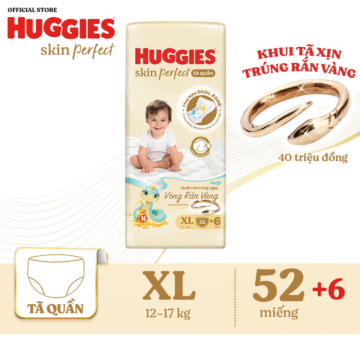 ✨[Gift] Tã quần Huggies Skin Perfect XL Super Jumbo 52+6 miếng với 2 vùng thấm giảm kích ứng da - Mẫu ngẫu nhiên