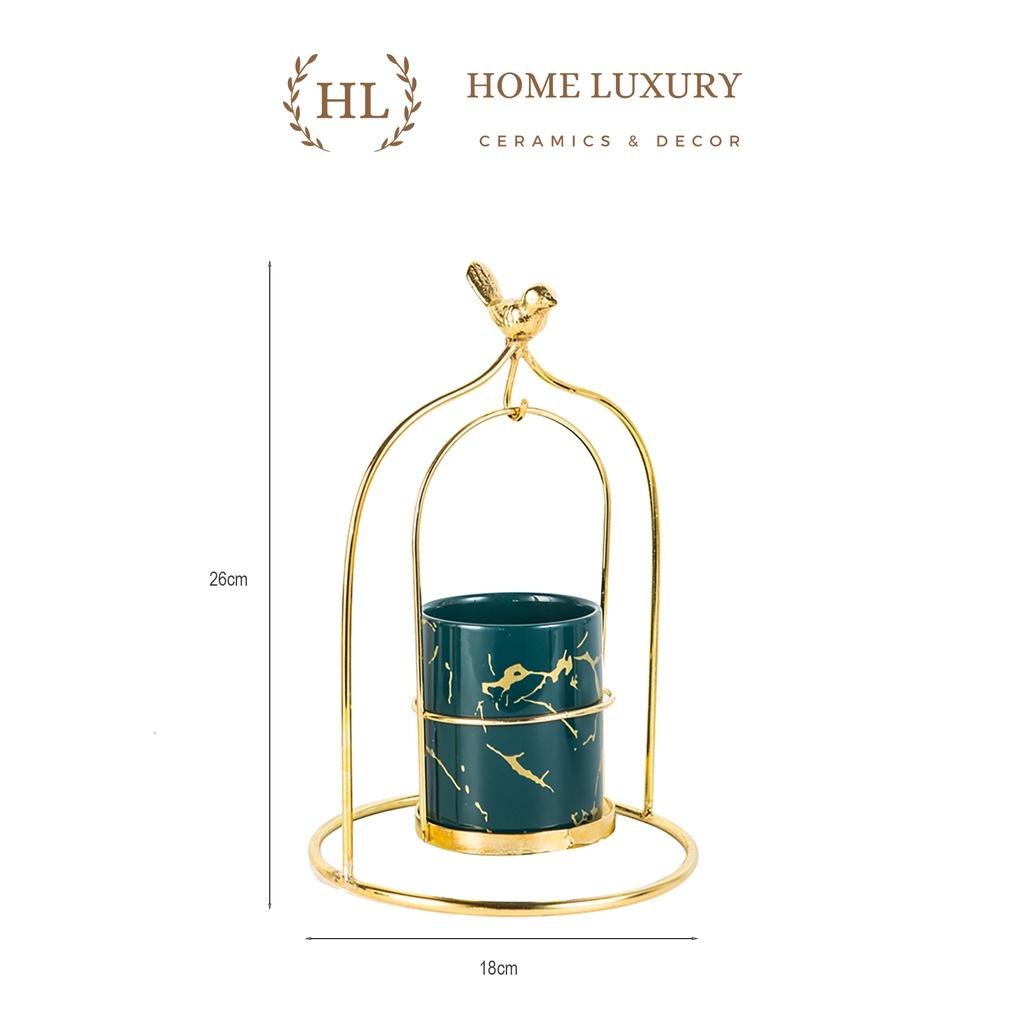 Lồng chim decor đựng dĩa , thìa đồ ăn trang trí , thiết kế độc đáo , hình lồng chim mạ vàng , cốc bằng sứ thiết kế theo phong cách bắc âu