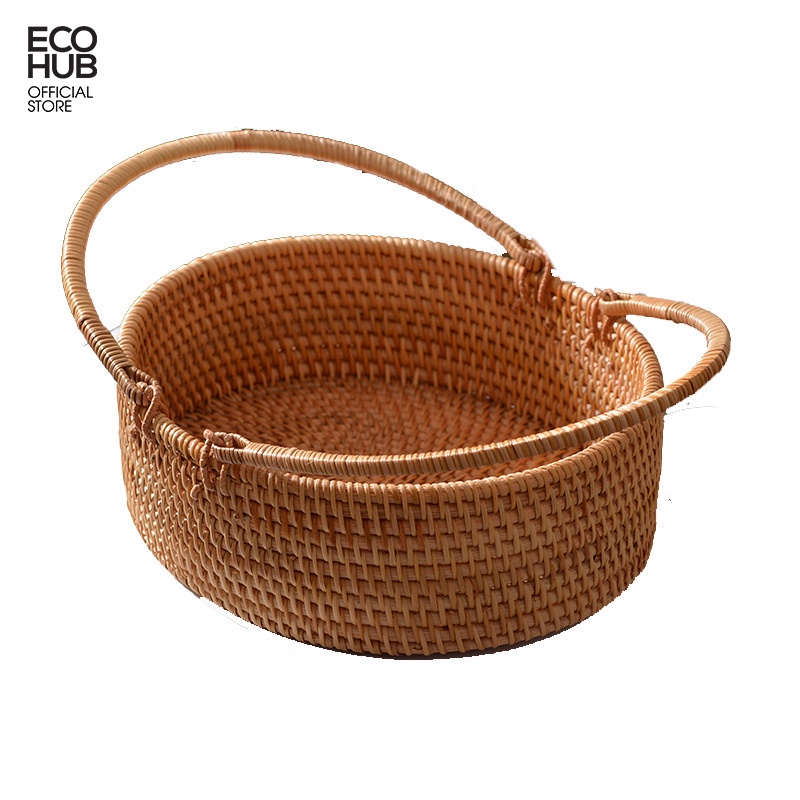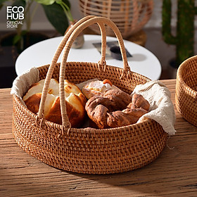 Giỏ mây ECOHUB có tay cầm đựng bánh mì, hoa quả.