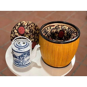 Ấm tích sứ Bát Tràng và giỏ ủ, dùng ủ các loại trà thảo mộc, trà xanh…