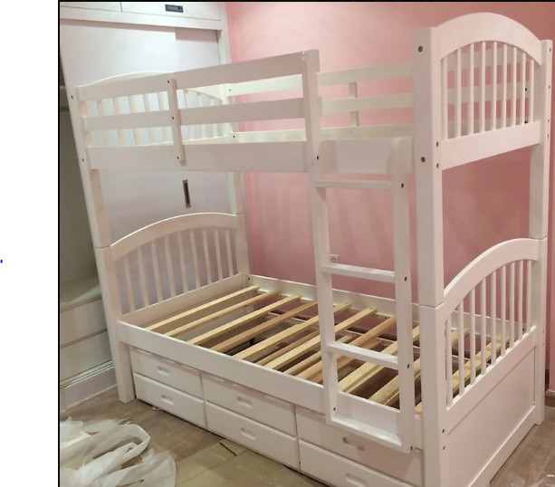 Giường 2 Tầng Unit Có Hộc Kéo (Hai Tầng Đều Rộng 1m2) - Chất liệu Chính: Gỗ thông Newzealand - Màu sắc: Màu Nâu, Trắng, Vàng Tự Nhiên - Thang Giường: Sử Dụng 10 Thang