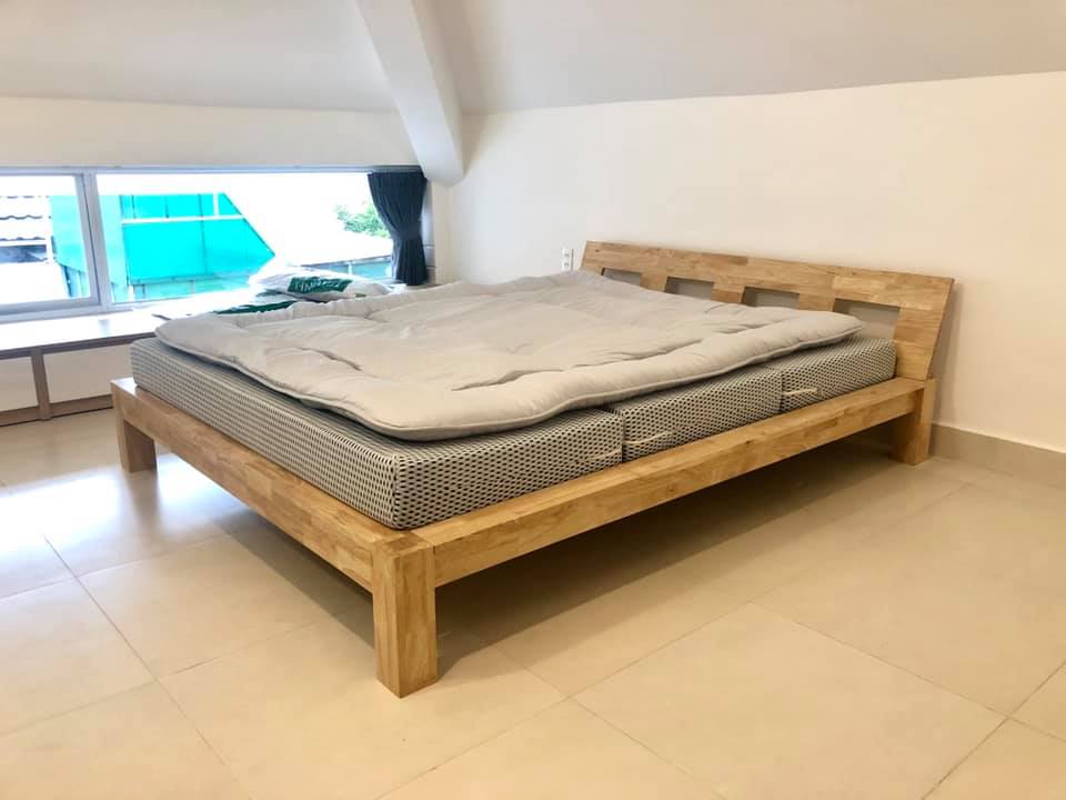 - Chất liệu: Gỗ caosu/ vạt giường nan gỗ thông.