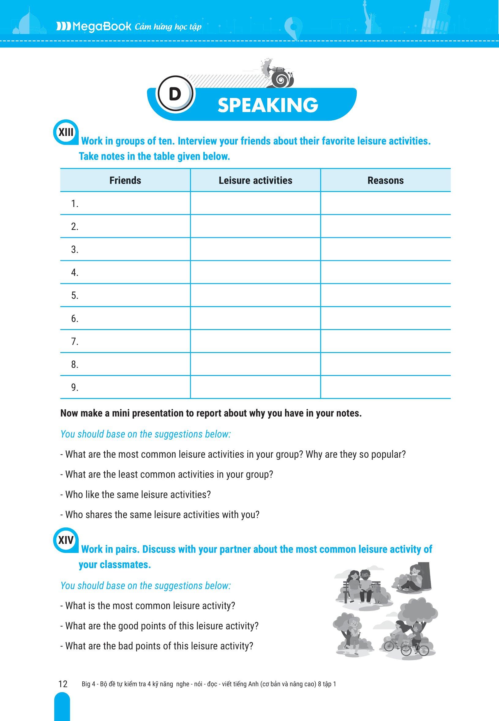 Các bài tập về 4 kỹ năng được liên kết với nhau theo logic bài học giúp cảm em cảm thấy tự tin và phát triển toàn diện kỹ năng nghe, nói, đọc, viết tiếng Anh