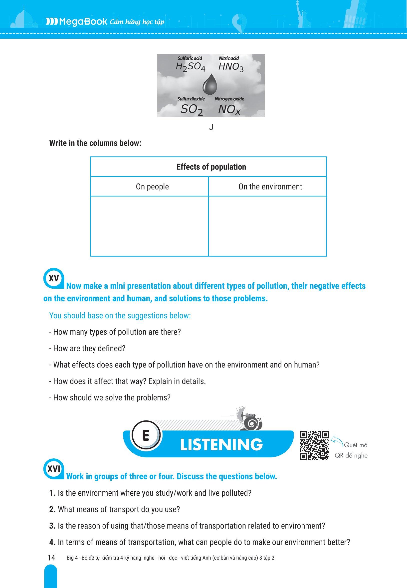 Các bài tập về 4 kỹ năng được liên kết với nhau theo logic bài học giúp cảm em cảm thấy tự tin và phát triển toàn diện kỹ năng nghe, nói, đọc, viết tiếng Anh