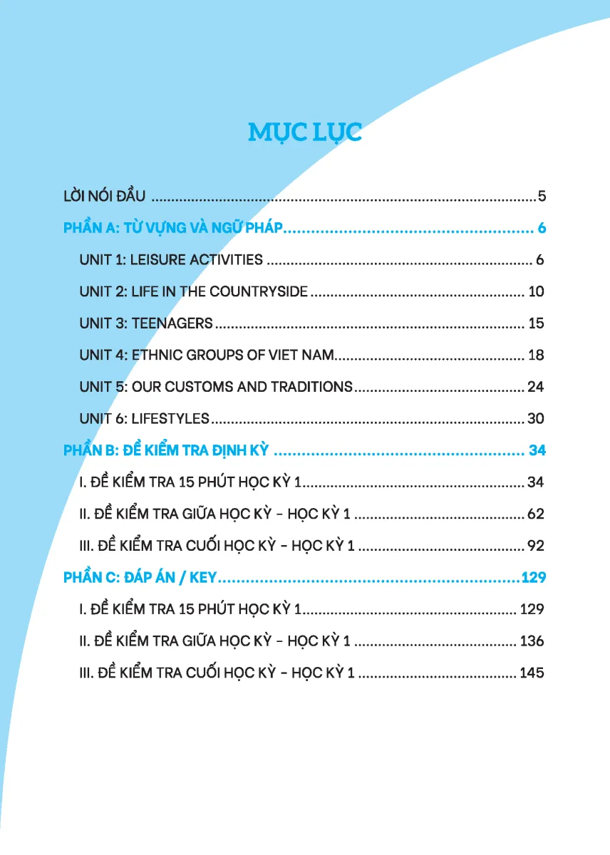 Nội dung cuốn sách được chia thành 3 phần: Nội dung kiến thức, Đề kiểm tra, Đáp án. Cụ thể: Phần 1: Nội dung kiến thức Nội dung kiến thức tiếng