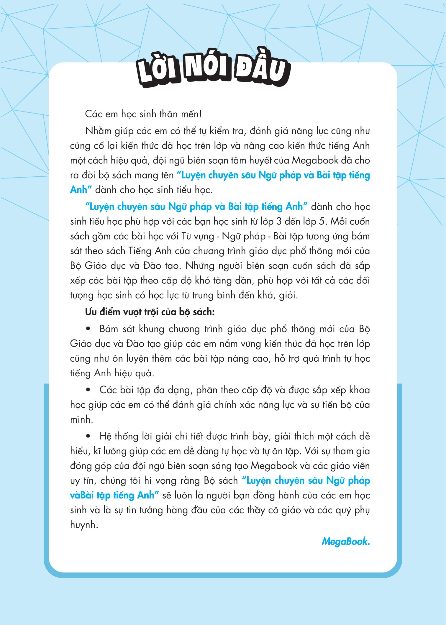 Thông tin sản phẩm Mã hàng 8936214272181 Tên Nhà Cung Cấp Megabook Tác giả Thùy Dương NXB Đại Học Quốc Gia Hà Nội Năm XB 2023 Trọng lượng (gr) 170 Kích Thước Bao Bì 26.5 x 19 x 0.8 cm Số trang 156 Hình thức Bìa Mềm Global Success - Luyện Chuyên Sâu Ngữ Pháp Và Bài Tập Tiếng Anh 3 - Tập 2 Ưu điểm của cuốn luyện chuyên sâu ngữ pháp và bài tập Tiếng Anh lớp 3