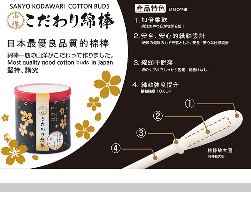 HỘP 110 TĂM BÔNG NGOÁY TAI MỀM KHÁNG KHUẨN, AN TOÀN SANYO - HÀNG NỘI ĐỊA NHẬT BẢN (Sản phẩm được nhập khẩu chính hãng từ Nhật Bản) ■ Xuất xứ: Nhật Bản / MADE IN