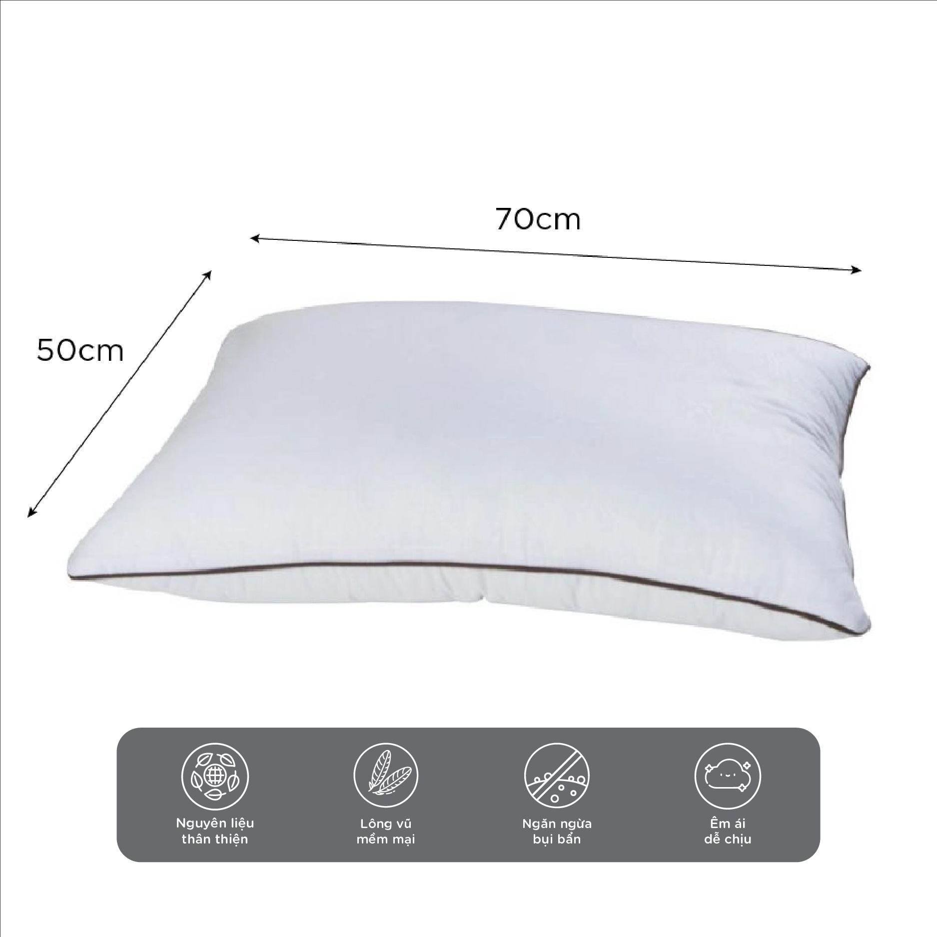 - Các sợi lông vũ nhân tạo được xử lý vô trùng, kháng khuẩn, đặc biệt là không gây mùi như gối 100% lông vũ tự nhiên, không kích ứng da nên những người mẫn cảm có thể dễ dàng sử dụng.