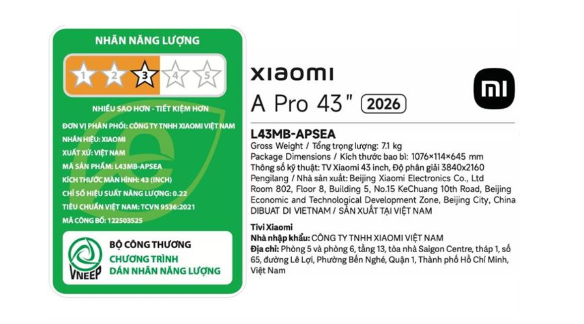 - Vì sao nên chọn Tivi Xiaomi L43MB-APSEA A Pro 2026? Chiếc tivi này không chỉ là sản phẩm công nghệ tiên tiến mà còn là khoản đầu tư thông minh cho không gian sống và nhu cầu giải trí của gia đình bạn. Hình ảnh chuẩn 4K sắc nét – Kết hợp nhiều công nghệ hiển thị cao cấp cho chất lượng hình ảnh vượt trội. Điều khiển cầm tay 360 độ và được thiết kế thuận tiện Âm thanh vòm sống động – Mang đến không gian giải trí như tại rạp. Giao diện thông minh, dễ dùng – Google TV giúp người lớn lẫn trẻ nhỏ đều sử dụng thuận tiện. Thiết kế đẹp mắt, hiện đại – Tôn lên vẻ sang trọng cho mọi không gian nội thất. Tivi được thiết kế với khung viền gần như mỏng tuyệt đối