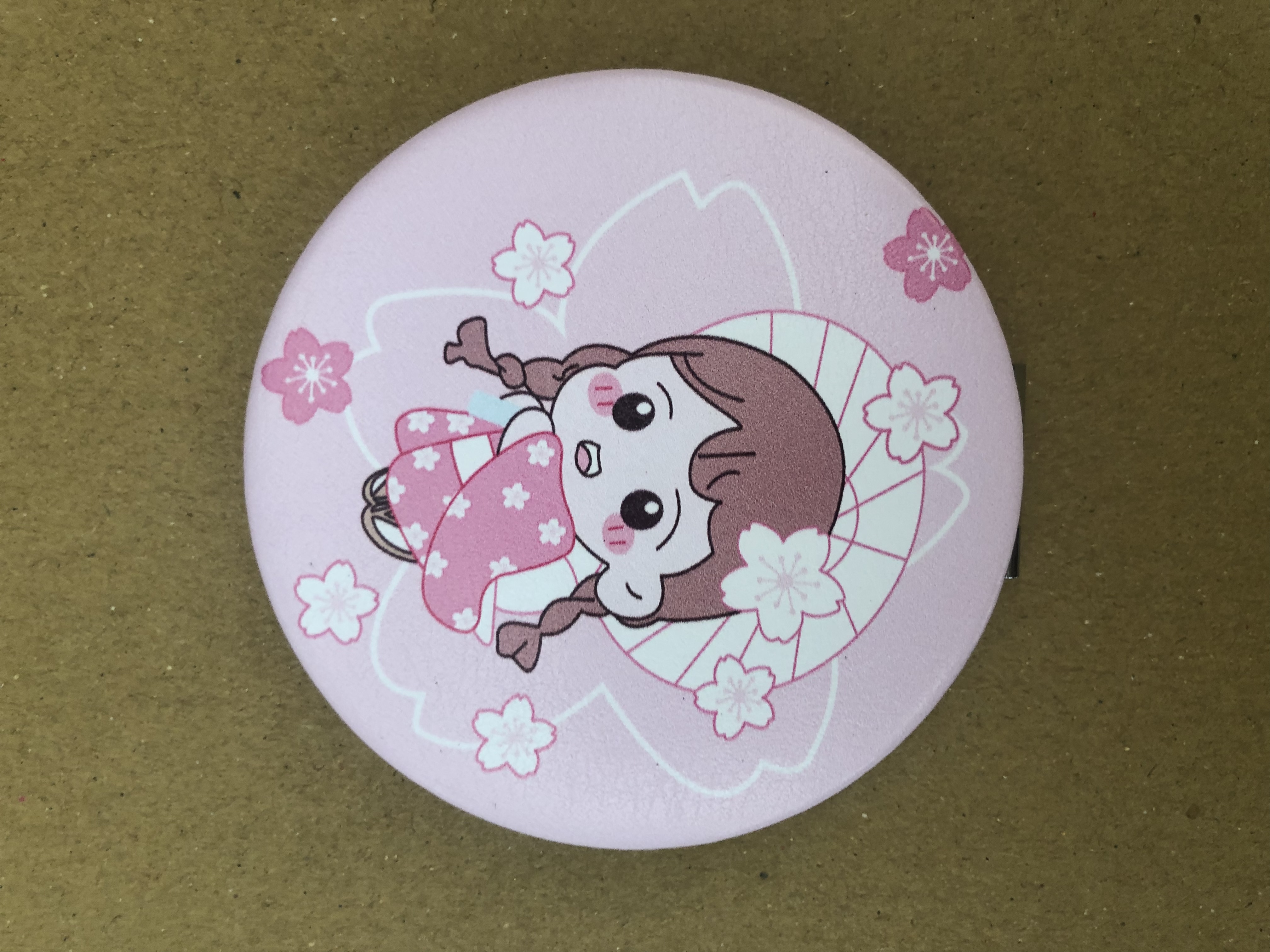 - Gương hình tròn có dạng nắp bật được trang trí bằng những hình ảnh, chi tiết hoạt hình thú vị, những dòng chữ mang ý nghĩa đáng yêu, màu sắc bắt mắt hẳn sẽ rất được lòng các chủ sở hữu.