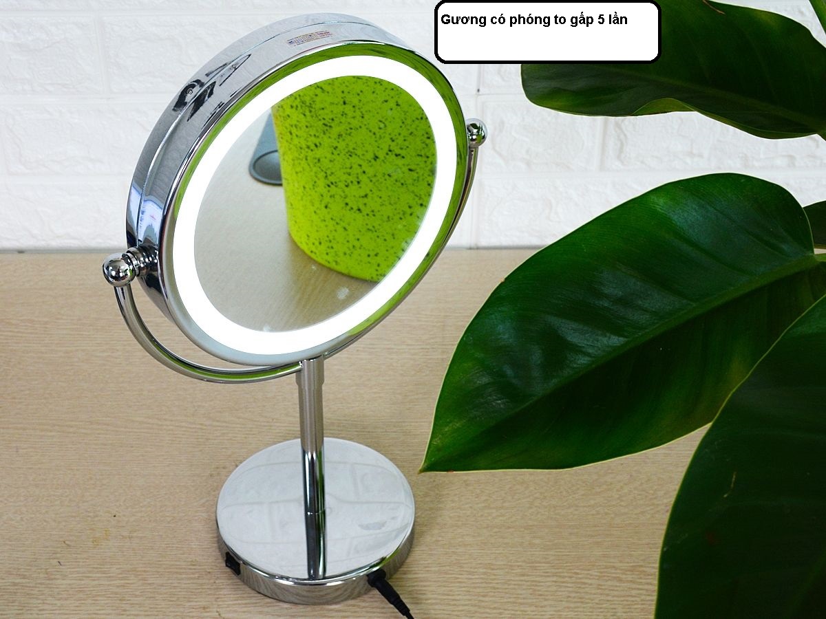 Gương trang điểm để bàn LED, Crom, phóng đại zoom x3, 2 mặt xoay siêu nét Minh House Mô tả gương trang điểm để bàn Crom phóng đại zoom x3, 2 mặt xoay siêu nét