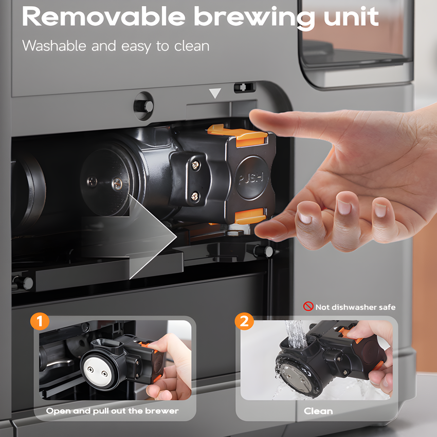 - Được thiết kế chú trọng đến tính hiệu quả, HiBREW H16 có thời gian làm nóng nhanh, đảm bảo cà phê sẵn sàng được pha nhanh chóng. Điều này đặc biệt có lợi trong môi trường văn phòng bận rộn, nơi nhân viên có thể có ít thời gian nghỉ giải lao. Dễ dàng vệ sinh, bảo trì