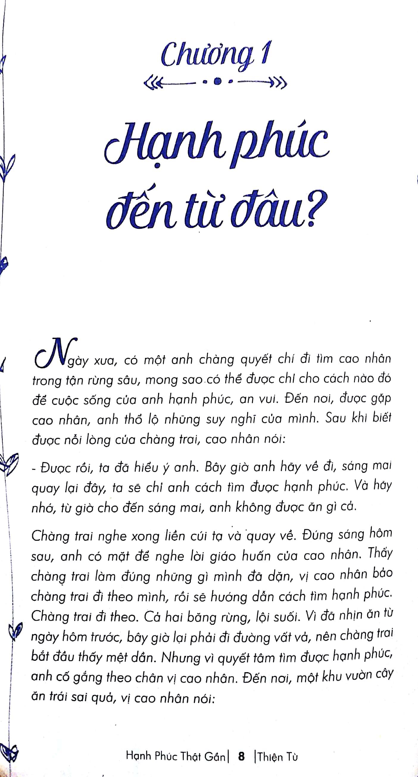 Hãy lật dở từng trang sách thật nhẹ nhàng để cảm nhận từng nhịp thở của sự hạnh phúc đang ở bên ta. Rồi một lúc nào đó bạn chợt nhận ra hạnh phúc chẳng đâu xa, chỉ đơn giản là những ánh nhìn cảm thông, thấu hiểu cũng đủ để trái tim ấm lại, tâm hồn sẽ cảm thấy nhẹ nhàng, thanh tịnh và sẵn sàng đón nhận những điều tuyệt vời mà cuộc sống này mang lại.