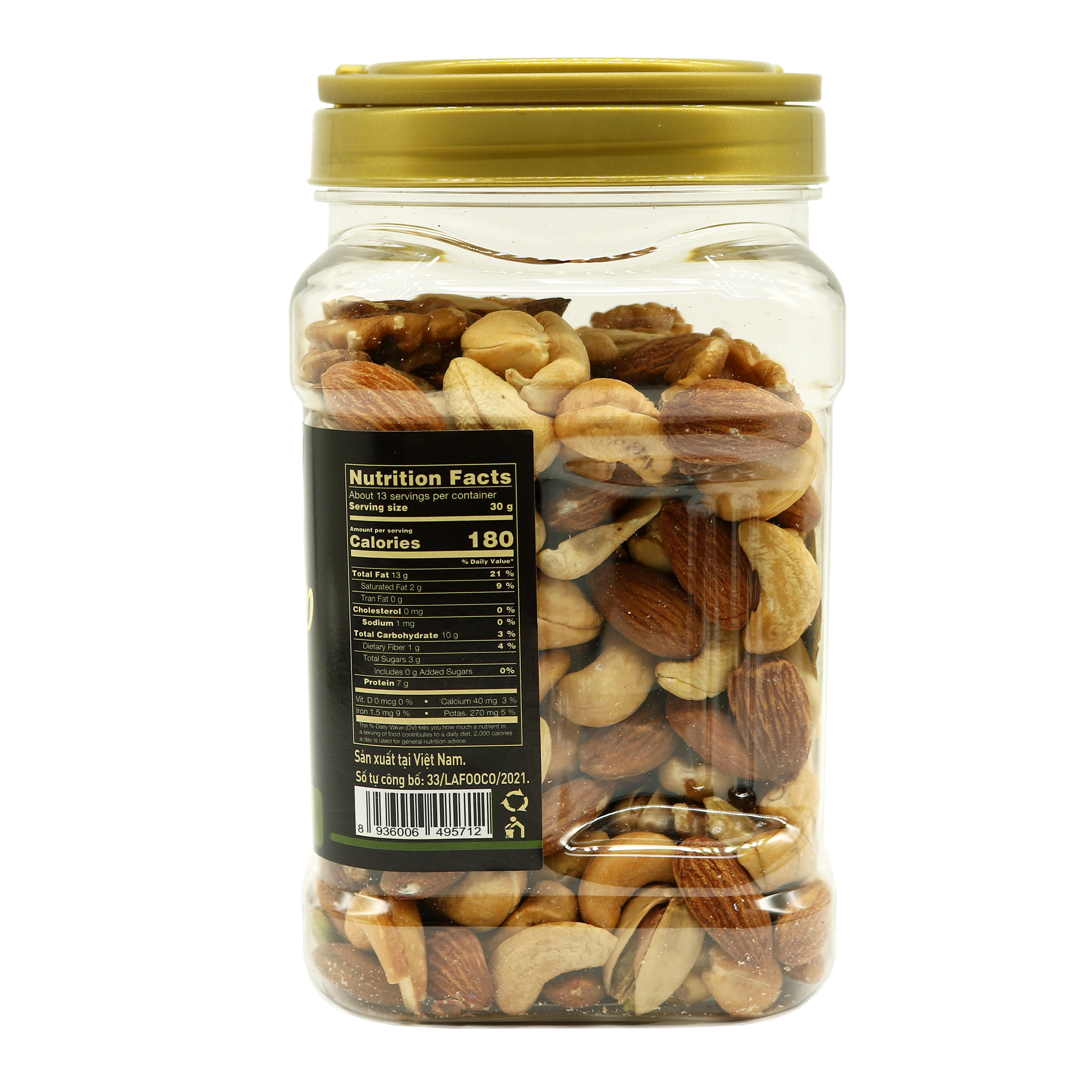 - Hạt Dinh Dưỡng Hỗn Hợp 4 Loại Hạt Điều, Hạnh Nhân, Óc Chó, Dẻ Cười Không Muối Lafooco 400g là sự kết hợp hài hòa giữa hạt điều, óc chó, hạnh nhân và hạt dẻ cười, là nguồn cung cấp đa đạng dưỡng chất, vitamin, chất xơ thực vật tốt cho cơ thể.