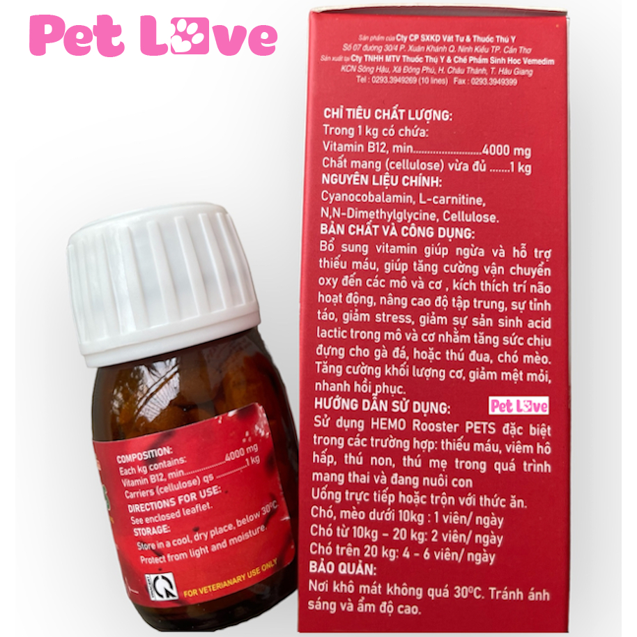 ✨Hemo Rooster Pets tạo máu, bổ sung vitamin và khoáng chất cho thú cưng (Vemedim)