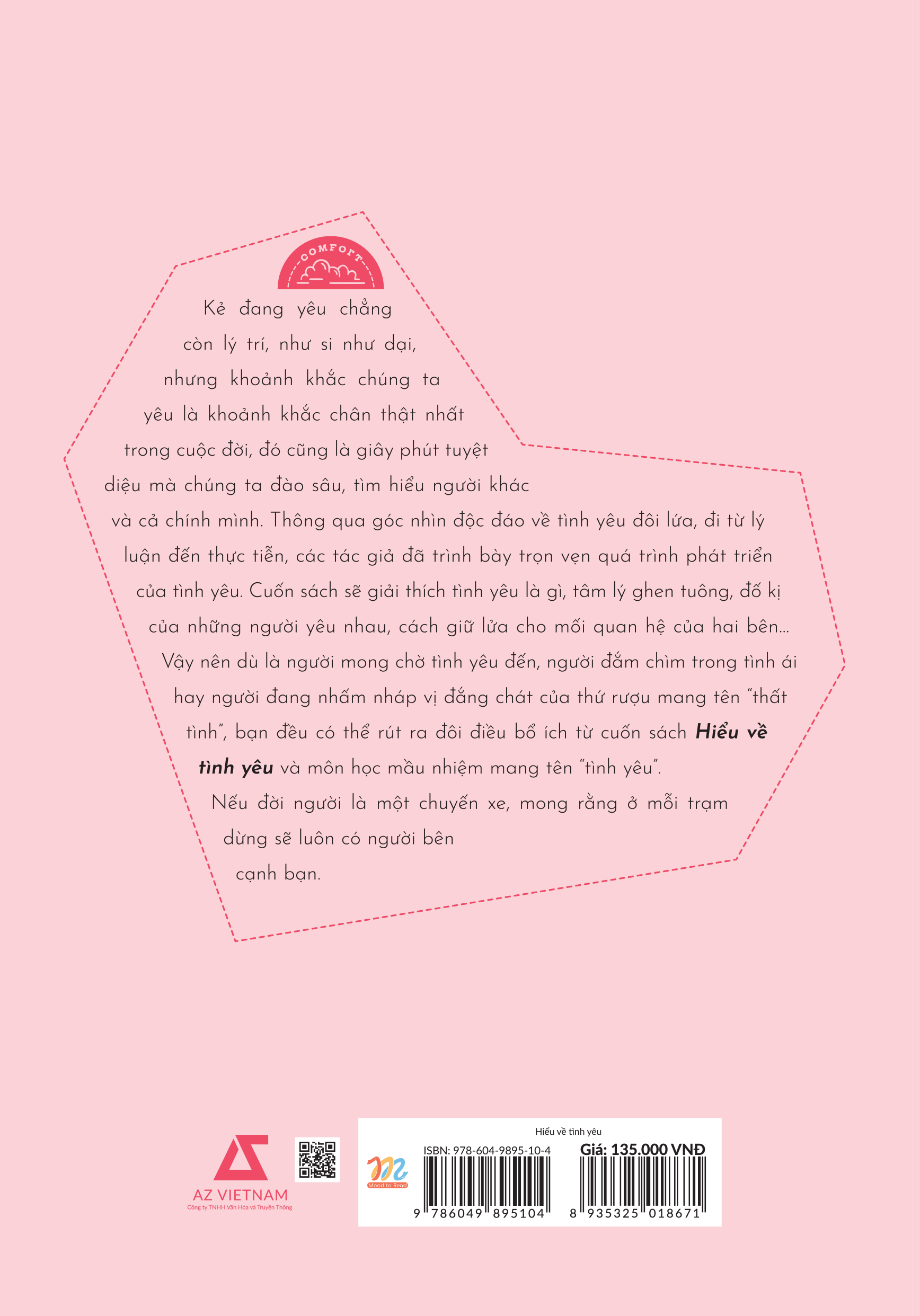 - Yêu dài lâu Yêu và được yêu là nhu cầu cơ bản của con người, nhưng để nắm giữ cũng như duy trì mối quan hệ khăng khít và hoàn hảo thì không hề đơn giản như việc giải một bài toán, chỉ cần nắm chắc công thức là được. Điều này đòi hỏi chúng ta nắm vững nhiều kỹ năng mềm liên quan đến tâm lý học. Đây không chỉ là một cuốn sách phân tích tình yêu dưới góc độ tâm lý học, nó còn là kim chỉ nam thực tiễn, giúp bạn bóc tách dáng vẻ thực thụ của “tình yêu”, hướng dẫn bạn thực hành nhằm xây dựng nên mối quan hệ lành mạnh và phù hợp nhất, đồng thời tìm ra sự sáng suốt trong tình yêu. Với nhiều năm làm việc trong lĩnh vực sức khỏe tâm lý sinh viên và tư vấn cho giới trẻ về tình yêu, Tiến sĩ phát triển và giáo dục tâm lý Đoàn Hâm Tinh cùng các cộng sự Lý Văn Văn và Tư Oánh Tuyết đã sở hữu cho m.ình nền tảng lý luận tâm lý học vững chắc và kinh nghiệm làm việc dày dặn. Cuốn sách là kết quả của họ sau nhiều năm nghiên cứu và khóa học trực tuyến Tâm lý học tình yêu được đón nhận nồng nhiệt bởi người trẻ Trung Quốc với hơn 7 triệu lượt xem. “Hiểu về tình yêu” là một chiếc la bàn dẫn đường đến hạnh phúc dành cho những bạn trẻ đã, đang và sẽ yêu thương một ai đó
