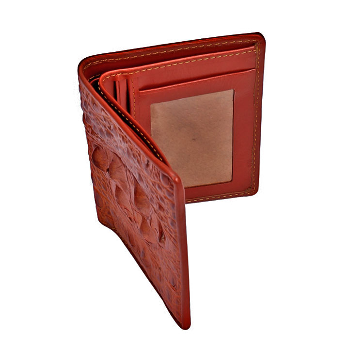 - Ví nam được làm bằng chất liệu da cá sấu cao cấp tạo kiểu dáng lạ mắt, sang trọng. - Thiết kế nhỏ gọn, thời trang, dạng ví nam xếp đôi, có nhiều ngăn