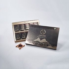 Hồng sâm củ khô hộp thiếc 37.5g Thành phần: - 100% nhân sâm Hàn Quốc qua quá trình hấp sấy thành hồng sâm củ khô nguyên chất, được sấy khô và đóng hộp gỗ bên